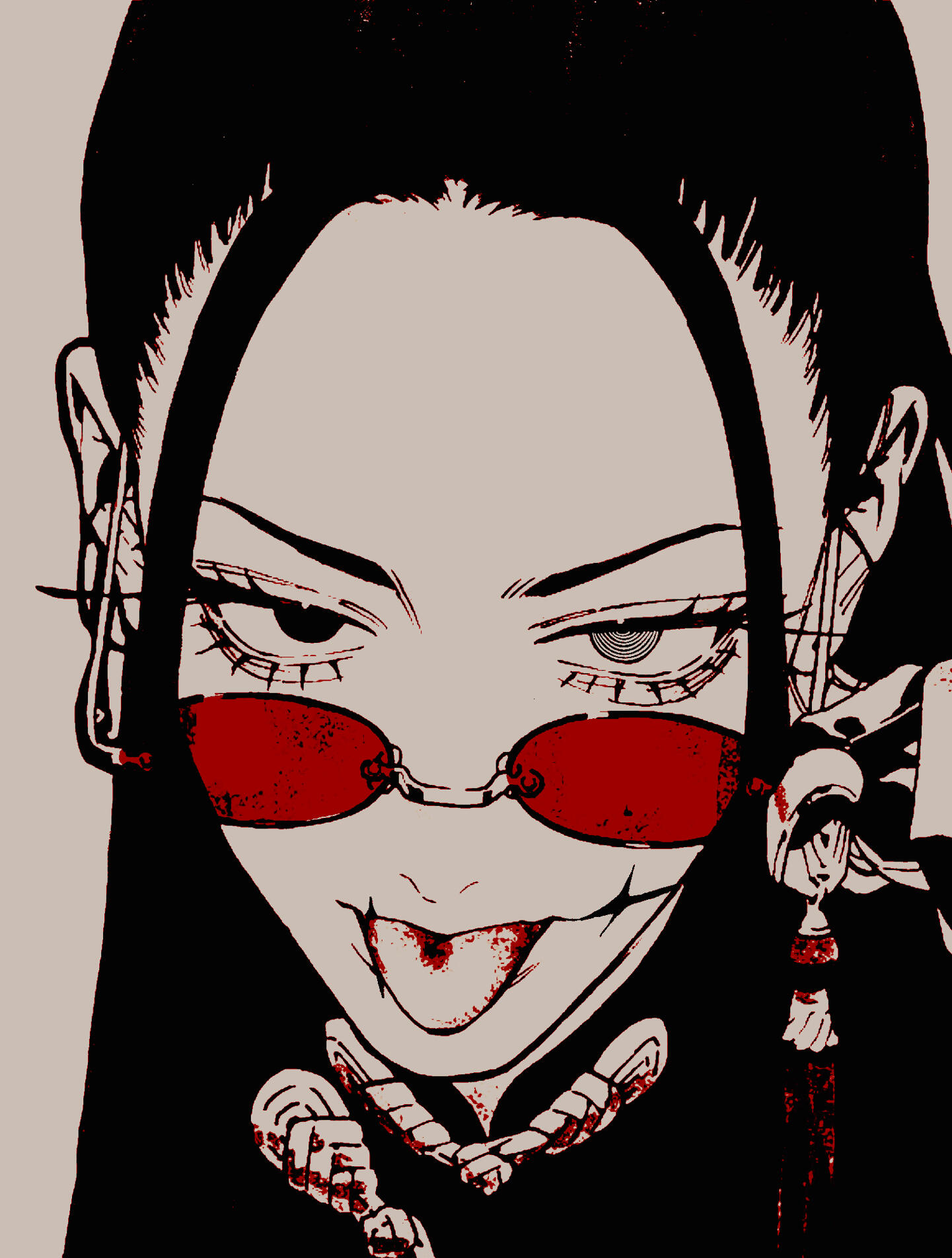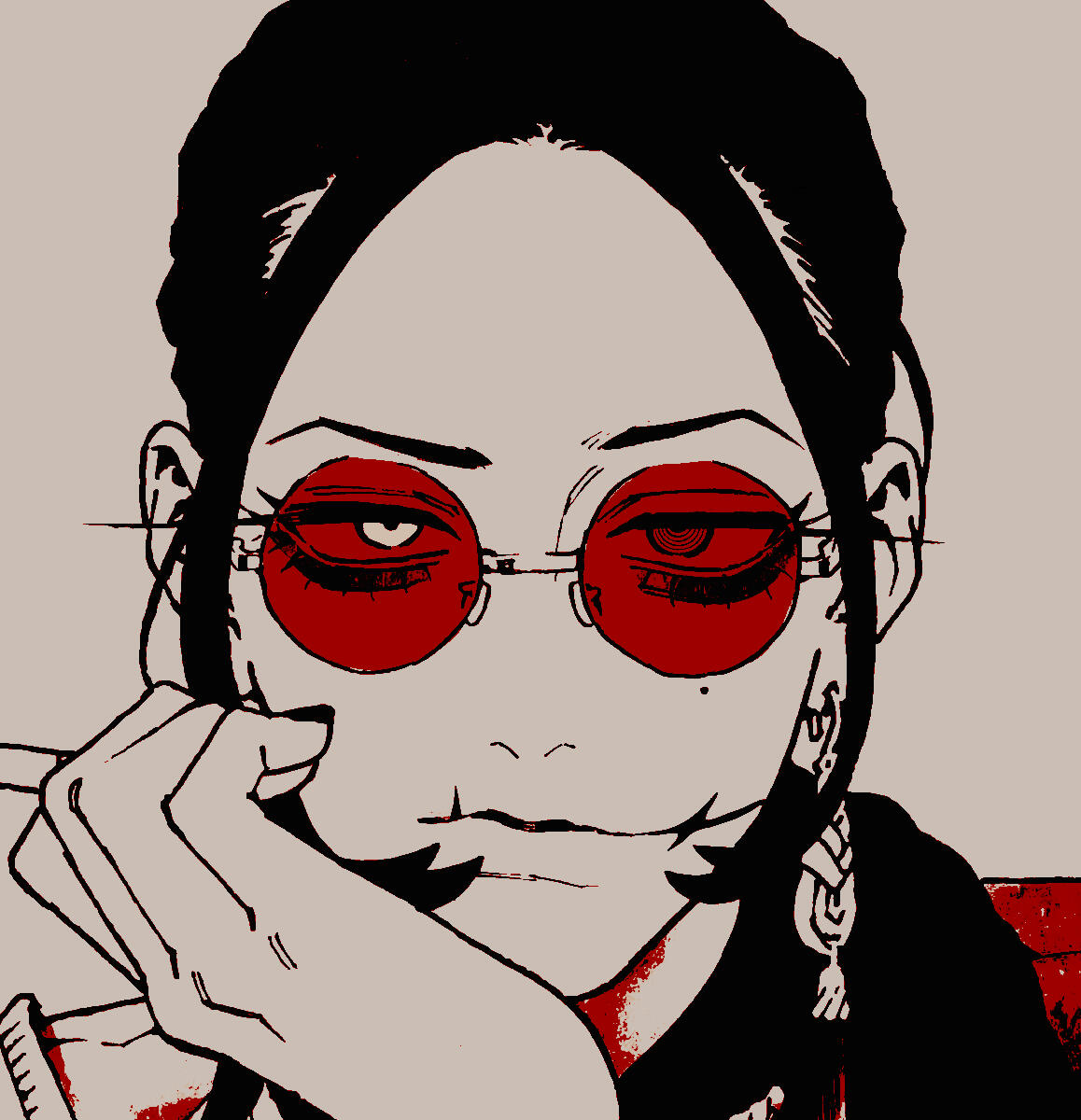 accessories red-tinted circular bifocals.